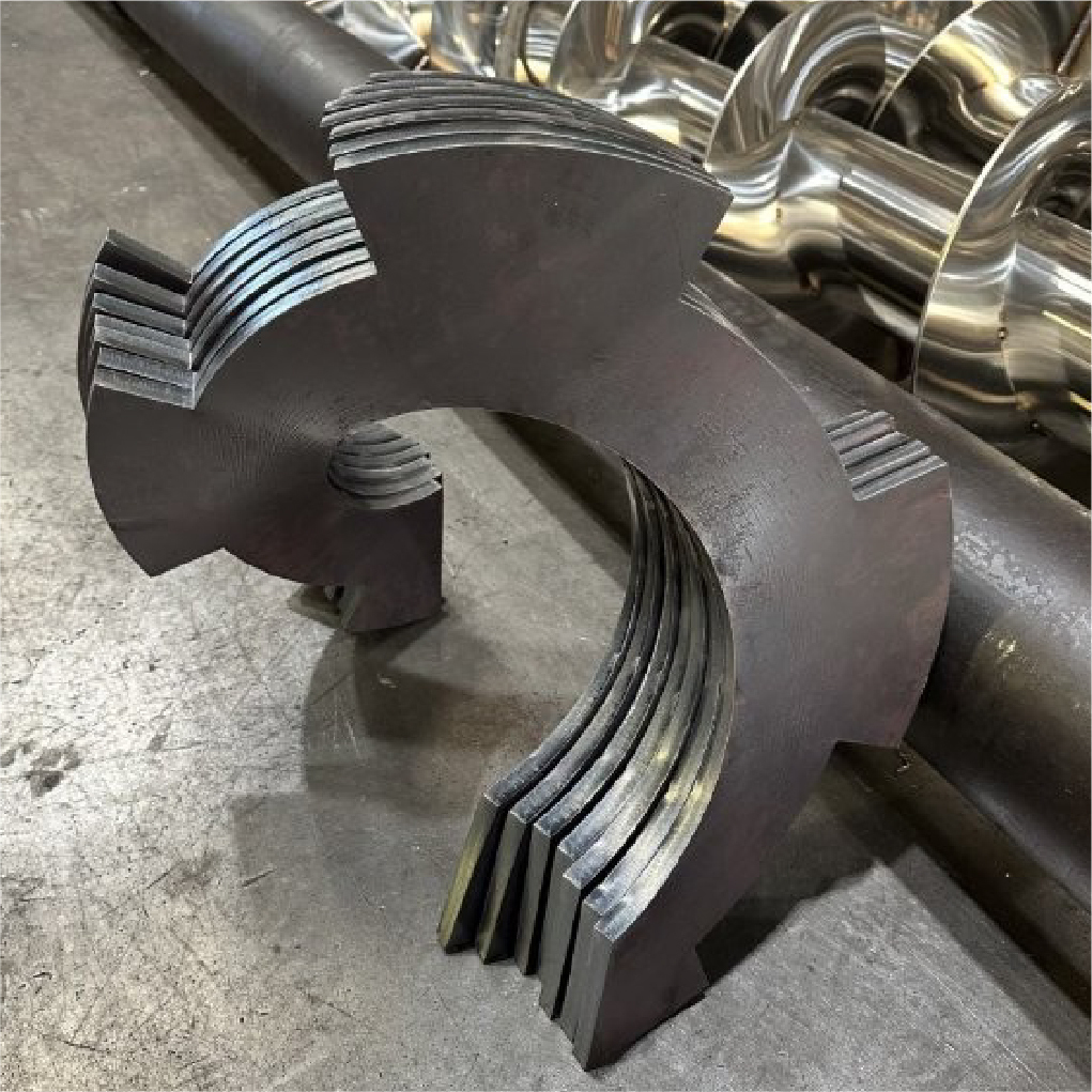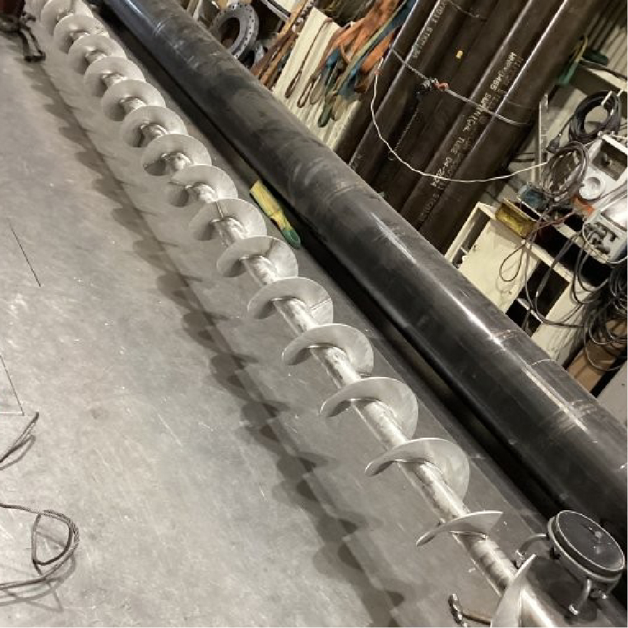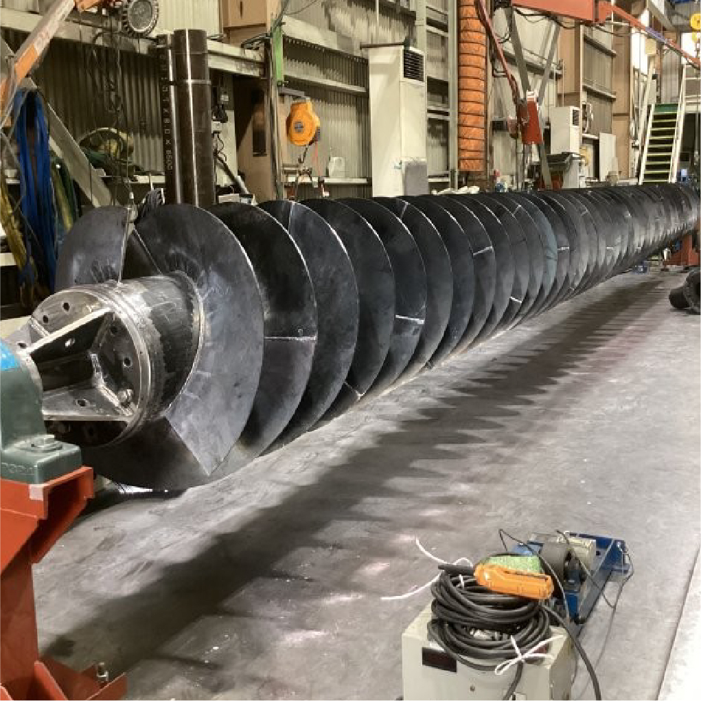 羽根曲げ、溶接、歪取り、仕上げまで内作なので、精度の高いスクリュー軸の製作が可能です。